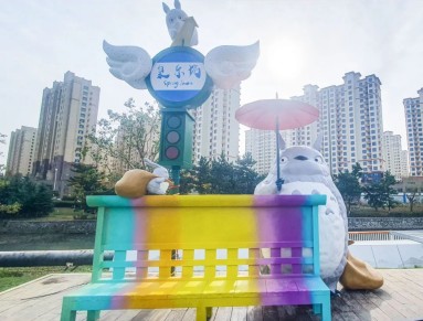 泉樂坊公園坐落于五渚河溫泉段,泉樂坊商業(yè)街南側(cè),面積約2.7萬平方米。公園的設(shè)計(jì)上,巧妙采用“一帶、九景、多節(jié)點(diǎn)”的功能結(jié)構(gòu)布局。其中,“一帶”指五渚河濱水岸帶,它宛如一條靈動(dòng)的絲帶,將公園的精華景觀串聯(lián)成珠;“九景”則涵蓋龍貓車站、天空之境、開往春天的列車等諸多景觀,這些景觀造型復(fù)古且充滿文藝氣息,極為適合游客拍照打卡。