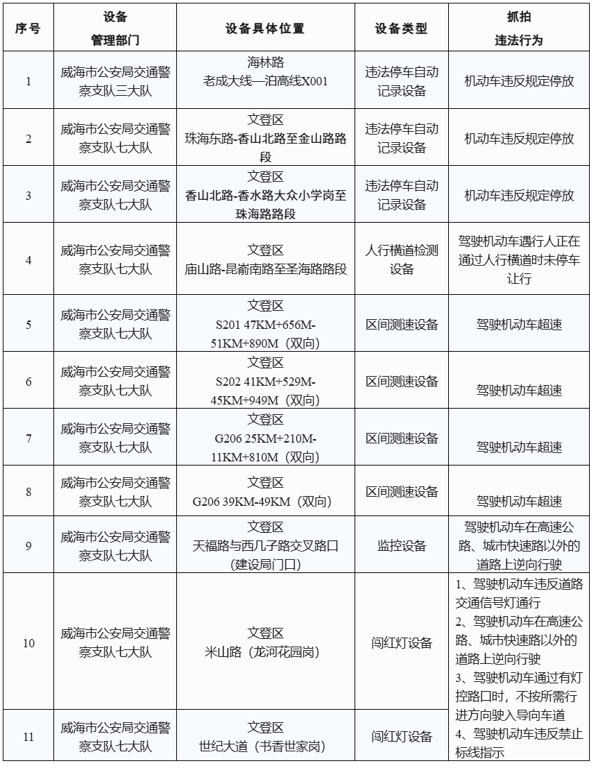 為有效預(yù)防和減少交通事故,確保道路交通安全、有序、暢通,根據(jù)《中華人民共和國道路交通安全法》及其實施條例等法律法規(guī)和相關(guān)技術(shù)規(guī)范的規(guī)定,依據(jù)《公安機(jī)關(guān)執(zhí)法公開規(guī)定》,現(xiàn)將新增11處15個交通技術(shù)監(jiān)控設(shè)備予以公示,自10月20日起,將對有關(guān)交通違法行為進(jìn)行依法管理,請廣大交通參與者自覺遵守道路交通法律法規(guī),共同維護(hù)良好的道路交通秩序。
