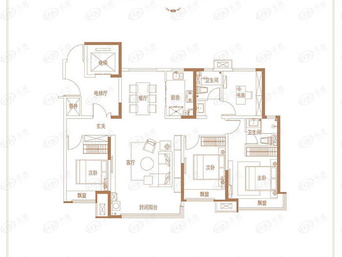 ②約6米大橫廳(以實(shí)際為準(zhǔn)),房間內(nèi)基本沒(méi)有浪費(fèi)面積,三個(gè)房間飄窗可以完全拓展利用。北向書(shū)房采光充足,動(dòng)靜分離。