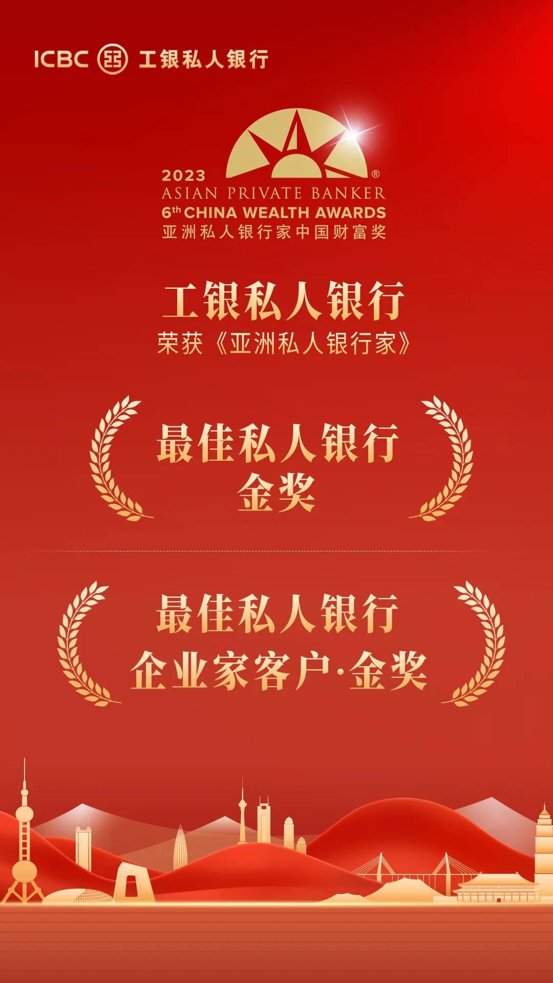 近日,香港《亞洲私人銀行家》雜志公布“2023年中國財富獎”評選結果,工銀私人銀行從眾多同業(yè)競爭者中脫穎而出,榮膺“最佳私人銀行——國有銀行組·金獎”及“最佳私人銀行——企業(yè)家客戶·金獎”殊榮?!秮喼匏饺算y行家》雜志作為全亞洲最有影響力的私人銀行媒體機構之一, 以其專業(yè)的報道和深度的數(shù)據(jù)分析深受私人銀行與財富管理界信賴,此次榮獲《亞洲私人銀行家》雜志兩項大獎,這標志著工銀私人銀行在綜合化服務能力和企業(yè)家客群服務能力表現(xiàn)得到權威媒體的充分肯定。